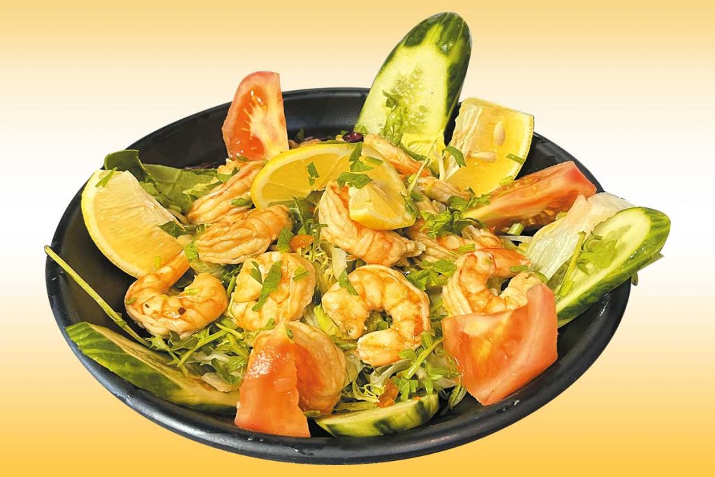 (Crevettes sauté a l’ail servir avec salade) 13€