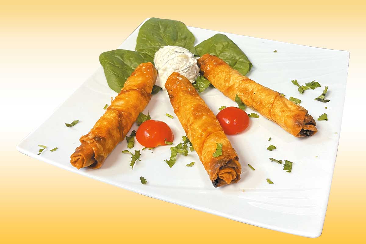 ( Feuilletés au fromage turc, persil – Puff pastry with turkish cheese, parsley ) 9.5 €