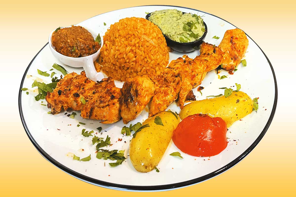 ( Brochette de viande hachée assaisonnée au yaourt et l’ail ) 24€